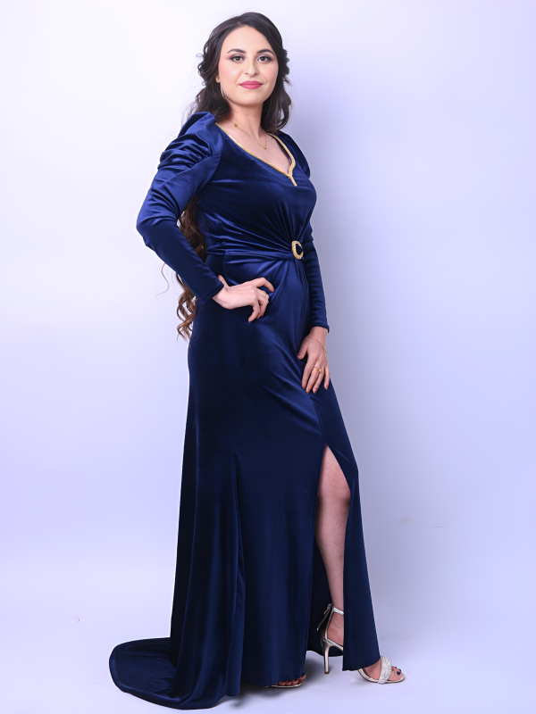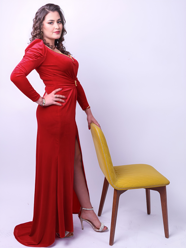Un modèle très girly, unique et élégant en velours doté de manches bouffantes et Traîne, orné avec des strass avec Nœud torsadé